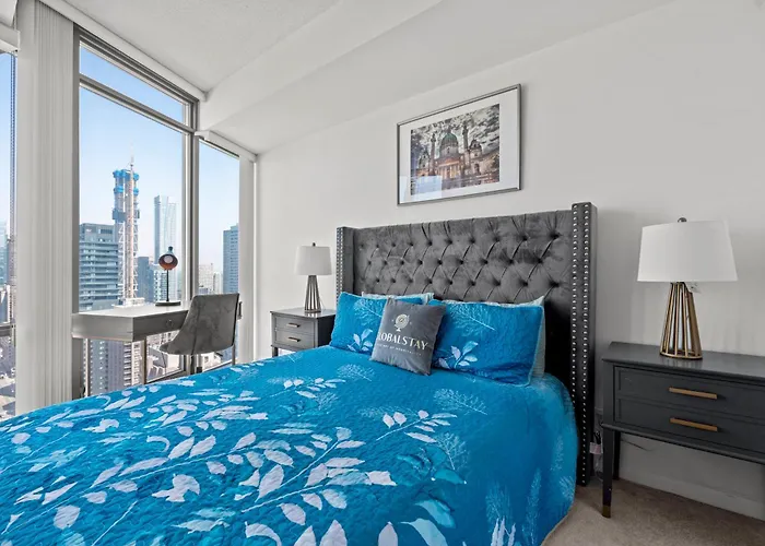 Magnificent 1 Bd High Floor View Downtown Toronto Lejlighed ferielejlighed ligger i centrum af Toronto, nær Police Museum & Discovery Centre. Indkvarteringen er og byder på et udstyret køkken med alle nødvendige redskaber til at tilberede måltider.